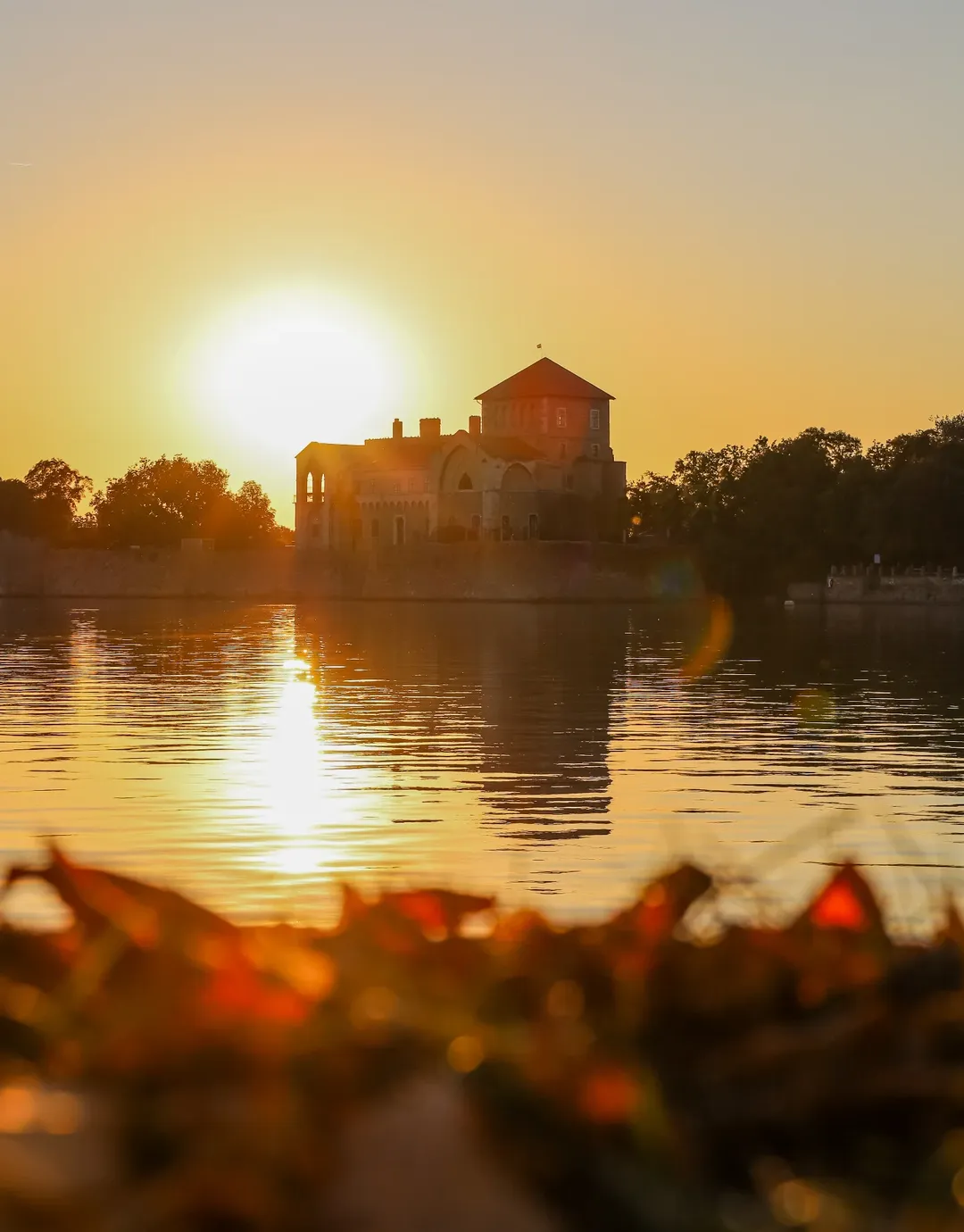 Tata is located in the valley between the Gerecse Mountains and Vértes Mountains, some 70 km (43 mi) from Budapest, the Hungarian capital city. Main sights include the Castle next to the Öreg-tó (Old Lake), the Esterházy Palace, the Heroes' Square with a World War I monument and synagogue, the Kossuth Square with the town hall, the parish church of Tata, the Capuchin church, Calvary Hill, the water mills, the English Park, the false ruins, Fényes Bath and the Turkish Mescid.